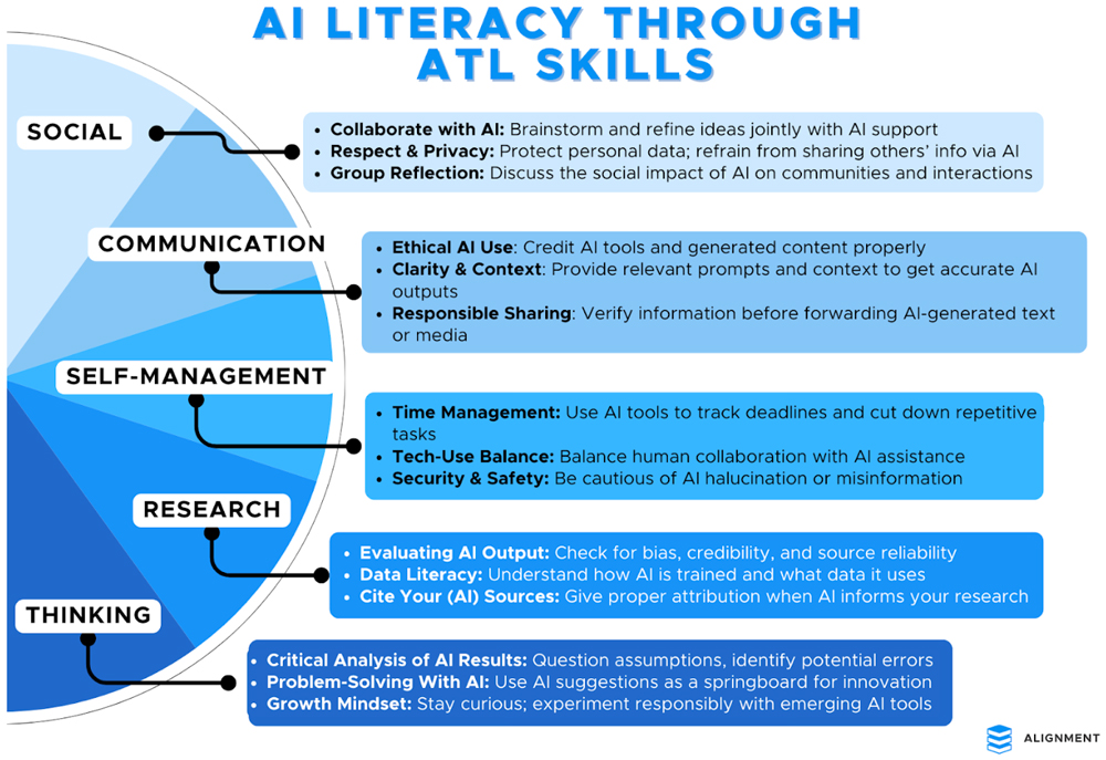 We looked through the ATL skills and asked, What matters most here when it comes to AI? We found natural connections across all five skill categories: Social, Communication, Self-Management, Research, and Thinking.