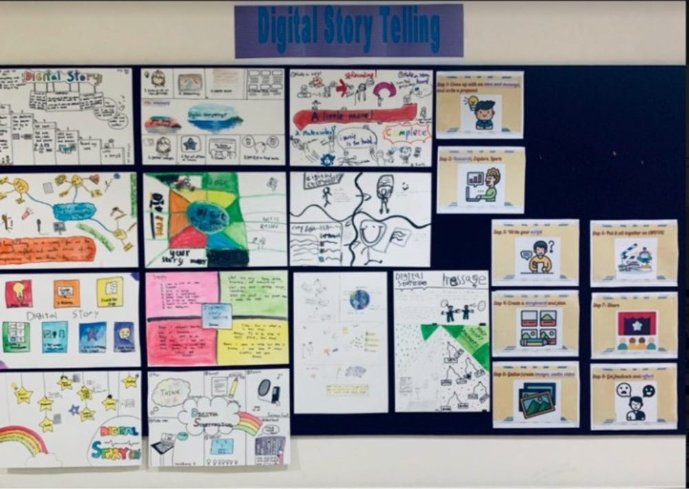 Here are some examples of the one-pagers the students created to reflect on their digital storytelling project. You can see that the quality of these reflections was much higher than the quality of the mind map shared above. This is because a lot of time and effort was spent on the reflection task.